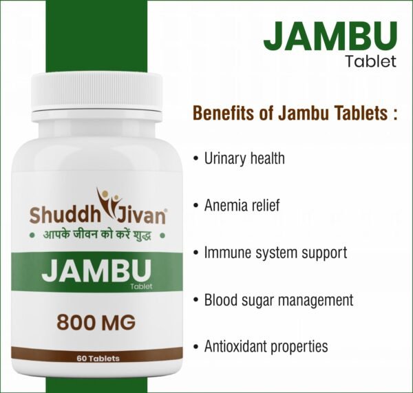 In addition, Shuddh Jivan Jambu Tablets may aid in improving hemoglobin levels, making them useful in cases of mild anemia. The antioxidant compounds present in Jambu help protect cells from damage, support digestion, and contribute to long-term wellness. Regular use, along with a balanced diet and healthy lifestyle, helps promote metabolic balance, immune strength, and overall health.