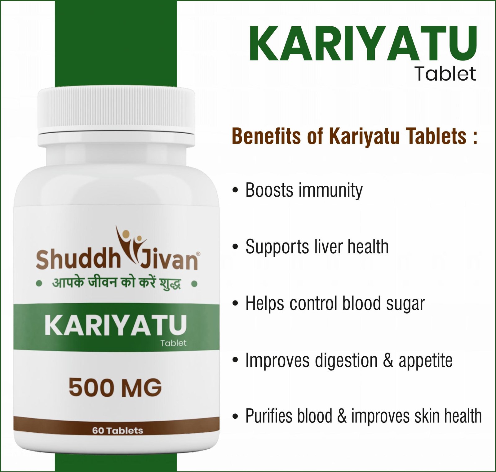 Shuddh Jivan Kariyatu Tablets offer a natural Ayurvedic approach to liver support, digestion improvement, immunity enhancement, and metabolic balance.
