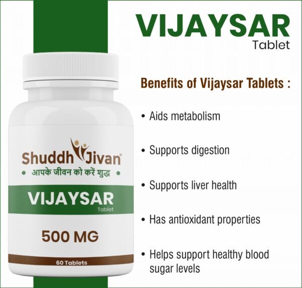 Regular use of Vijaysar Tablet supports digestion, liver health, and antioxidant protection while helping maintain healthy blood sugar levels. It is ideal for individuals seeking natural metabolic support and holistic Ayurvedic care for daily wellness.